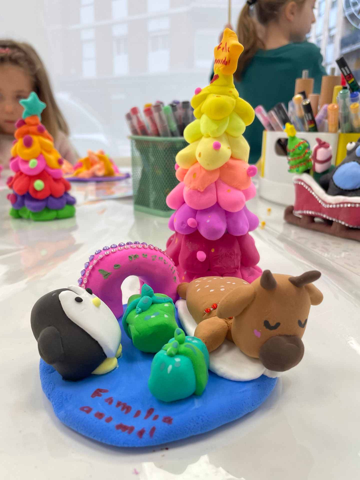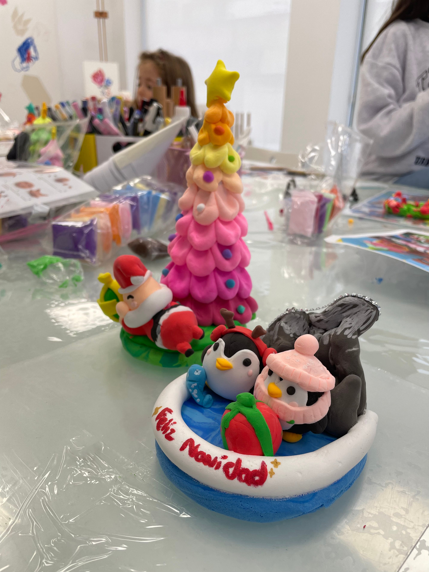 Crearemos nuestro árbol de navidad más brillante y colorido que imaginemos, modelaremos nuestro animal preferido y vestiremos con las ropas más invernales y divertidas. Regalos, duendes, trineos, bastones de caramelo, estrellas , bolas de navidad, renos, los Reyes Magos o Papa Noel! todos pueden cobrar vida con tus manos en nuestro taller!